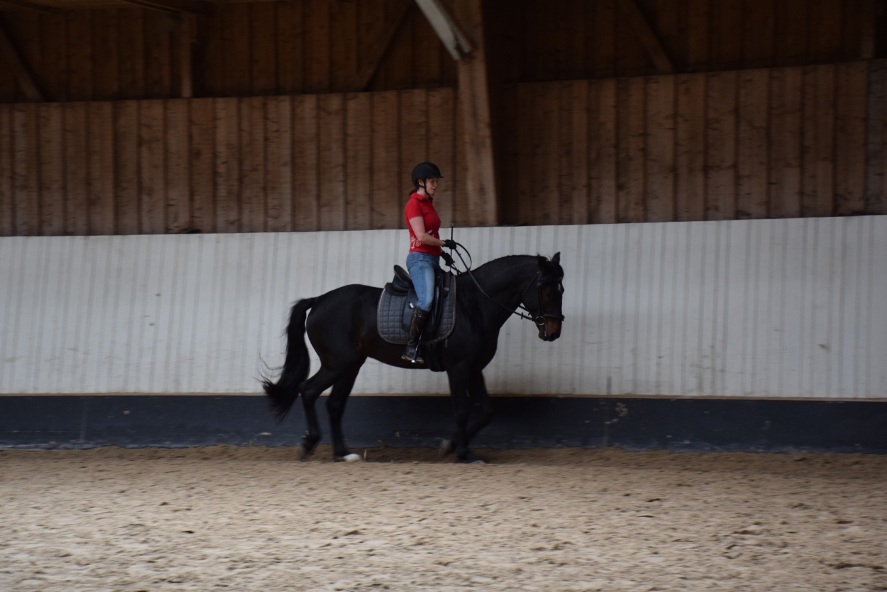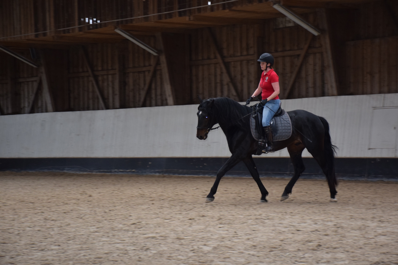 | Dire merci | Je ne vous ai pas oubliées, mais j'ai eu 200 photos méga pourries à trier. Je vous mets les 3 seules potables de notre leçon de mai dernier.![]() ![]() ![]() Sinon on avance gentiment, on bosse actuellement sur le contact , ça progresse petit à petit. J'ai peu de temps pour monter avec mon nouveau boulot, et les jours où j'y vais, il fait tellement chaud qu'on doit faire doucement. J'espère aussi pouvoir prendre des cours un peu plus régulièrement, parce que seule, j'ai tendance à stagner. |
