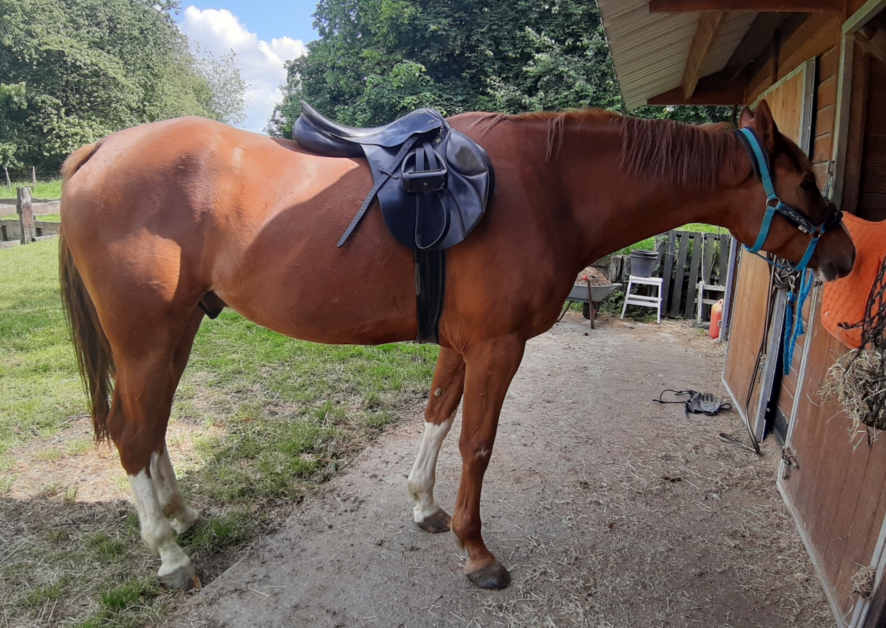 | Dire merci | Horizon est assez standard au niveau du dos. L'arcade noire wintec passe bien. Stubben est quand même modulable par presse au cas où il s'erlargirai beaucoup des épaules. J'avais essayer une siegfried de saut (aucune idée de l'année, mais ce n'était pas une antiquité et j'aimais bien son look). L'arcade était de 31 cm, angle trop ouvert pour les épaules d'Horizon, mais globalement la selle suivait bien son dos. ![]() |