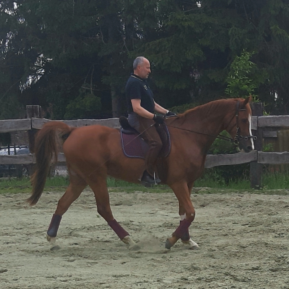 | Dire merci | LePex pour l'instant c'est surtout pour limiter la hauteur, car il a tendance à lever la tête trop haut et creuser le dos (qui de base n'est pas simple a tendre vu la longueur). Le problème est survenu au debourrage, il est revenu complètement à l'envers en seulement 4 semaines . Quasiment 2 ans pour le ravoir droit (avec principalement du travail à pied)Il n'y a que le pro qui utilise les enrenements, avec interdiction pour moi de les utilisés (ce que je compte ne jamais faire). Le pro règle de plus en plus lâche, donc a mon avis, il n'y aura bientôt plus besoin. |