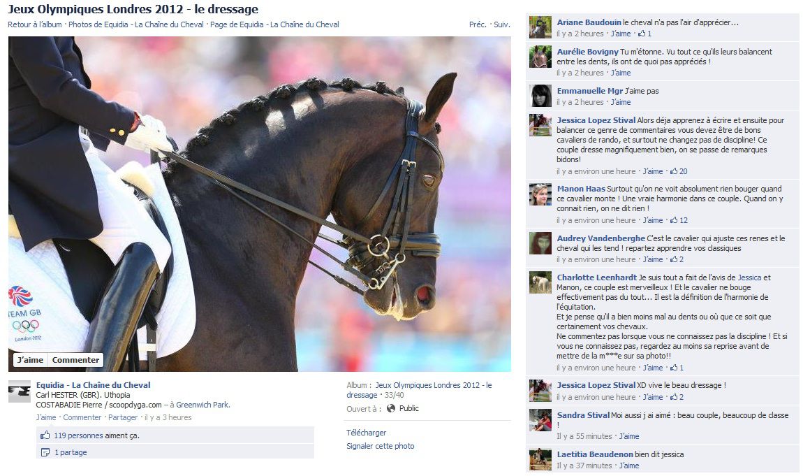 | Dire merci | C'est pas gai tout sa ! Même si il y a des histoires de rollkur etc, il y en aura toujours... Mais malgré sa, je pense que les certains cavaliers des JO sont encore sensés.. C'est quelle nationalité Kittel? |