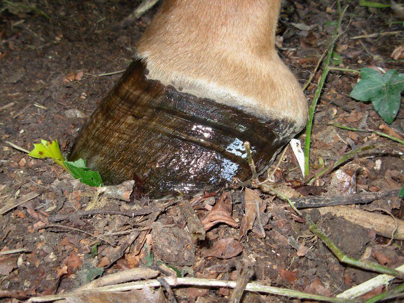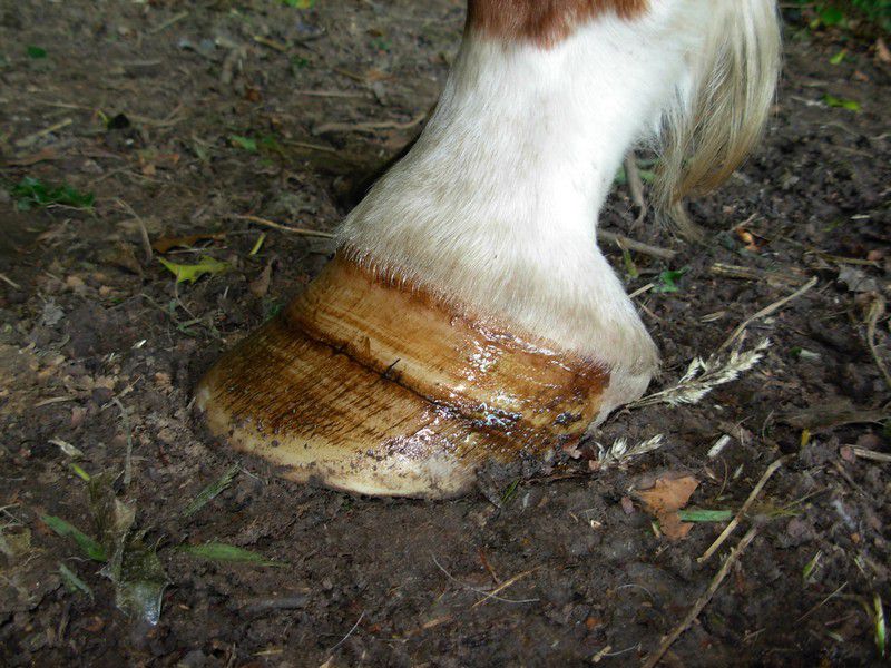 | Dire merci | ] Bonjour a tous, voila ma jument de 14 ans et pleine de 3 mois, elle a etait déferré debut Avril et aucun changement niveau morphologie sur ces sabots, ils ont commencé a changer fin juillet, des stries plus ou moins bombé sont apparus sachant qu'elle etait au foin jusqu'a mi juin vu qu'elle etait a l'elevage pour la saillie, elle est donc a l'herbe, elle a toujour vécue dehors, na jamais eu aucun soucis, des sabots de bonne qualité juste un peu plats et peu de talon. Anterieur Gauche le plus fragile de tous: ![]() De face: ![]() Dessous: ![]() Qu'en ils ont graissé on voit mieu les stries, ce qui est bizzar ce que cette stries etait beaucoup plus haute mais descend au fur et a mesure de la pousse ![]() Anterieur vu d'ensemble: ![]() Posterieur Gauche: ![]() ![]() ![]() Posterieur gauche graissé ![]() Posterieur droit seime mais qu'elle a depuis trés longtemp. ![]() Et une photo de ma baleine, jespere qu'elle n'est pas trop grosse. ![]() ![]() Voili voilou Bye bye |