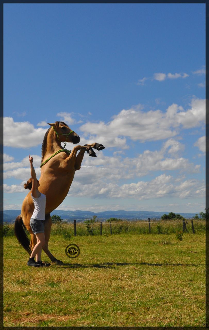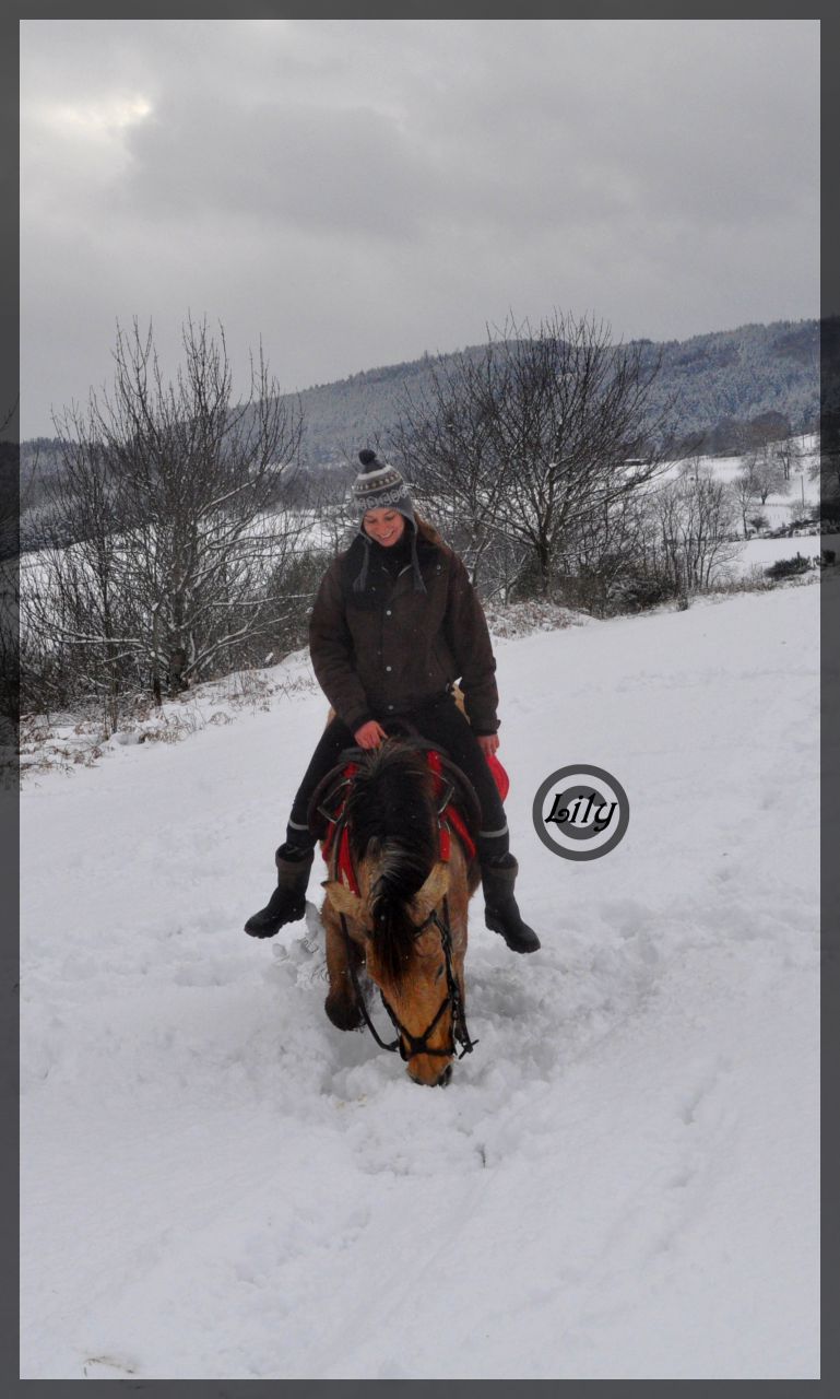 | Dire merci | Sibérie et moi sommes toutes nouvelles sur 1cheval ! une petite présentation s'impose donc !! ![]() ![]() Elle a environ 3ans et demi, quand je l'ai connu ! Mon patron l'a acheté afin qu'elle devienne ponette de club ! Elle est tout juste débourrée. Je suis chargée de la travaillée, afin qu'elle soit montable par les petits cavaliers ! Sibérie s'avère trop dans le sang pour les débutants ! Elle est alors mise en vente. La travaillant depuis 4mois, et m'y étant bien trop attaché, je ne pouvais me résoudre à la voir partir !! Je l'achète donc, et deviens, officiellement, ce 1er Mai 2010, propriétaire ! C'était mon bouquet de muguet !!![]() (Photo prise le jour de son arrivée) On commence à travailler ! On touche un peu à tout. Ma discipline de prédilection est le saut d'obstacle, mais avoir son cheval à soi permet d'essayer bien des choses, aussi bien monté qu'en travail à pied !! Tout y passe ! Travail en extérieur, balade, plat, saut, éthologie, "cirque", ... Premier hiver chez nous ! Première grosse chute de neige, juste les parents à la maison ! Et le chasse-neige qui est passé uuuun peu près des piquets de clôtures ! Fils, par terre, recouvert de neige, les loulous, dehors !! ![]() ![]() (Photo des Chouchous, dans leur pré, décembre 2010) Lien du post du copain --> https://www.1cheval.com/membre/forum/general/sujet-2804750-2-mon-comtois-apaloosa-pour-le-plaisir-des-yeux ![]() (Photo de décembre 2010) On travaille, Sibérie change beaucoup ! Tant mentalement, elle devient plus posée, plus calme (en partie grâce à GrosCopain) que physiquement, elle s'arrondie, prend du muscle dans l'encolure, le dos, les fesses, les cuisses, ... ![]() (Photo d'avril 2011) Et aujourd'hui, nous sommes assez fière de ce que nous somme devenues ! ![]() * d'excellentes copines : une jolie complicité nous lie, désormais ! ![]() ![]() * de sérieuses travailleuses : nous sautons actuellement 125cm monté. Elle saute 140cm en longe. Nous nous mettons tout doucement, bien que sérieusement ( ) au dressage.![]() ![]() (Photo 1 : 110cm monté - Photo 2 : 140cm en longe) * de grandes partenaires de jeu : jambette, pas espagnol, "souuuuuri", "dis oui", cabré, début de cercle en liberté autour de moi, début de révérence, ... ![]() ![]() (Photo 1 : pas espagnol, Juin 2012 - Photo 2 : Cabré en liberté, Juillet 2012) Allez, amusons nous !! Des prognostics, avis à propos de la race de Sibérie ? (Aïe, je sens que je vais regretter cette question !! )Message édité le 09/08/12 à 17:21 |
