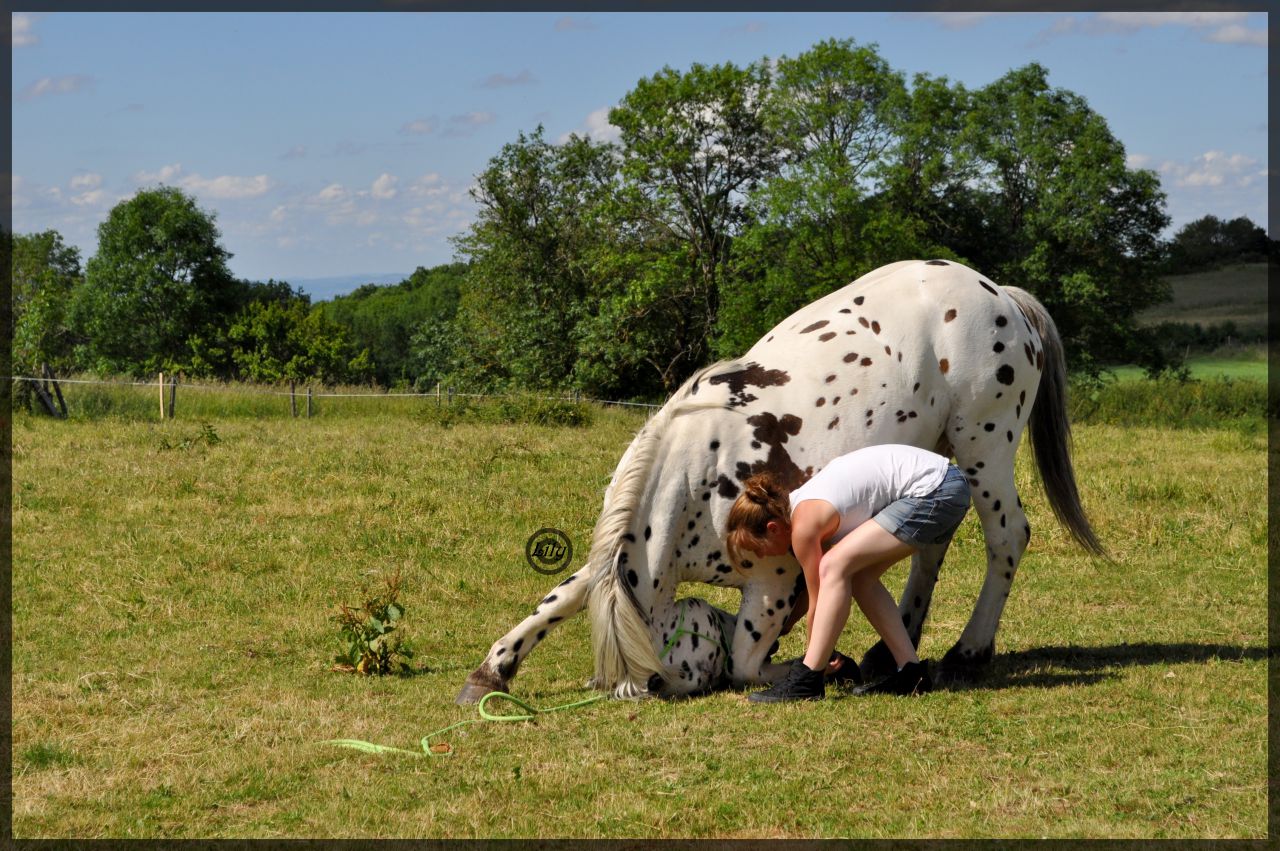 | Dire merci | Merci beaucoup Amrony et Malaya !! Ca fait chaud au coeur tout ça !! <3Encore quelques nouvelles photos tiens !! ![]() Au travail : La progression dans le "à genoux" est top !! J'essaie de lui apprendre à se coucher !! Bon, c'est pas fait encore einh ! Mais, dans le "à genoux", elle vient "s'abaisser", elle a le passage de sangle qui vient toucher les sabots !! ![]() Et quand elle veut ... *o* ![]() On y croit là, einh, qu'elle est partie pour se coucher !!! (Elle s'est finalement arrêter à ce stade, comme cette photo !! )Je ne sais plus si j'en avait parlé (c'est vrai, je ne viens pas souvent ici (honte à moi !! :/), mais je vais essayer d'y remédier !! ) !!Sibérie est pleine !! Et oui, je l'ai mise à la reproduction pour cette saison 2013-2014 !! ![]() Elle devrait pouliner fin mai début juin, à peu près !! ![]() Voici quelques photos du Papa !! Le très beau Usandro Tilia Derlenn (Sandro Boy x Welcome Sympatico pour les origines !! )![]() ![]() ![]() Sibérie est actuellement pleine de 6 mois et 16 jours !! ![]() ![]() J'adooore celle-ci !! ![]() Et là, on voit bieeeen le bidou !! ![]() ![]() Et celle-ci, avec Copain, j'l'aime beauuucoup aussi !! *o* ![]() |
