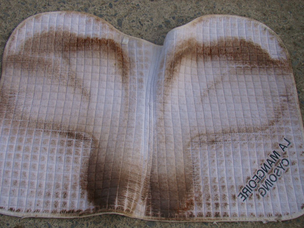 | Dire merci | J'ai aussi des traces blanches qui apparaissent quand je monte plus. Pour l'instant ce sont toujours des ronds secs à l'avant, derrière l'épaule. Pourtant j'ai essayé plusieurs arcades, et celle-ci semble être la plus appropriée. En revanche je n'ai pas autant de traces sèches que toi, pour moi au niveau du dos c'est nickel. |
