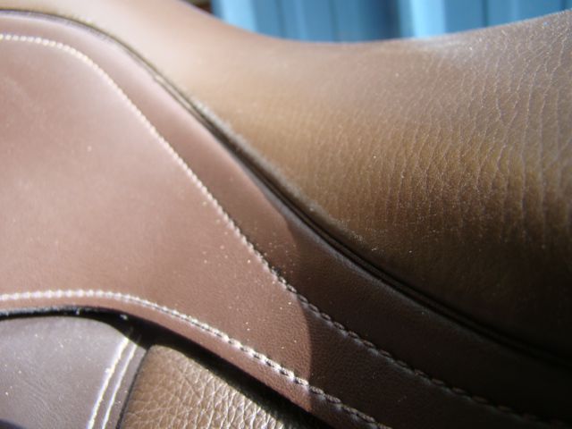 | Dire merci | C'est la partie petit quartier/siège non ? ça s'use souvent à cette partie voire ça se déchire quand la selle est vieille et que la couture dépasse. Si l'usure est trop rapide c'est pas normal ou alors c'est une selle bas de gamme. |