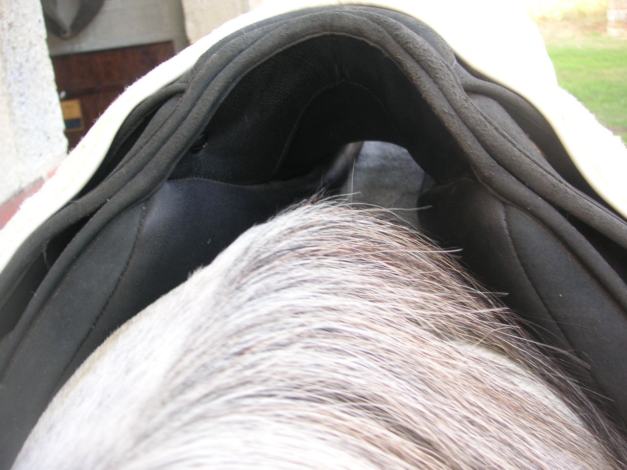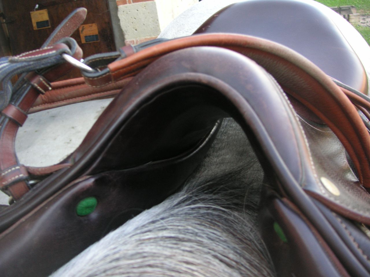 | Dire merci | Gishouw -> je dirais même plus...elle n'est pas sellée du tout loool (il n'y a pas la sangle), les selles se "placent" ainsi naturellement quand elles reposent sur le dos de ma jument. mais je vais mettre des photos de ma jument des selles "sanglées". Tout en sachant quelle fichue un peu bizarre (faite en descendant, épaules larges, dos rond presque plat et garrot très peu prononcé) ce qui fait automatiquement "glisser" les selles en avant, et bouger latéralement. J'ai l'arcade noire sur ma wintec. J'attends d'en recevoir une autre plus large. |