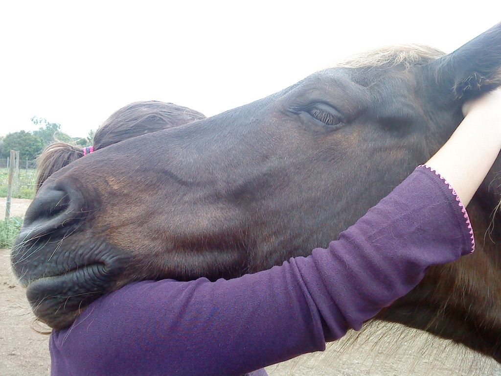 | Dire merci | J'ai 2 juments, une qu'il faut obliger un peu pour les câlins car elle préfère bouffer, mais dès qu'on arrive à lui lever la tête ou pendant le pansage elle adore. L'autre elle pourrait se faire caliner pendant des heures, c'est son truc. J'y vais plusieurs fois par semaine, je ne monte pas mais on passe notre temps à faire des papouille. C'est comme ça que j'aime mes jujus. |