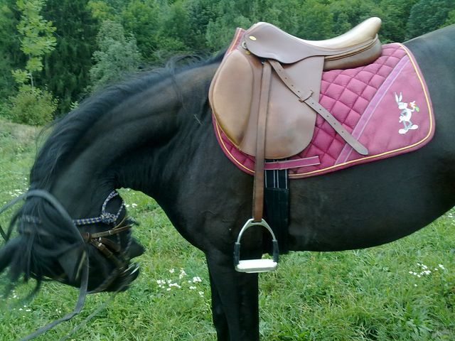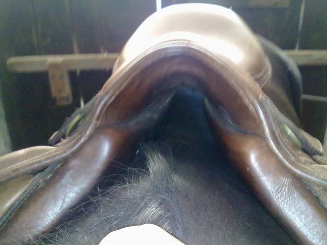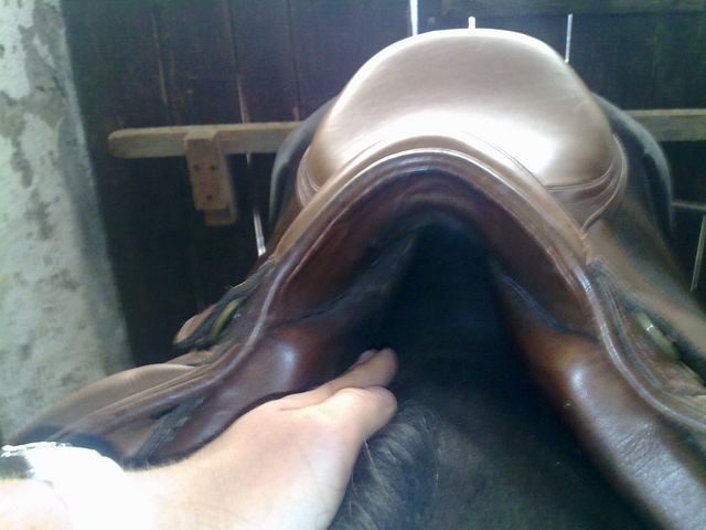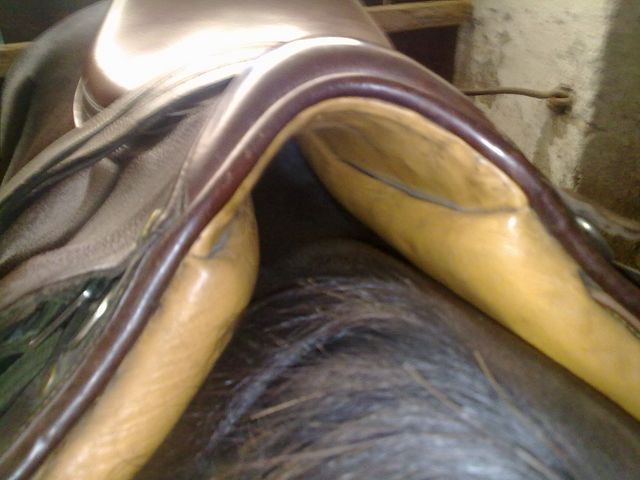 | Dire merci | Reprends des photos selle sanglee (sans tapis toujours) et de maniere que l'on voie bien l'angle epaule/arcon (donc une photo de cote-face, si tu vois ce que je veux dire) |