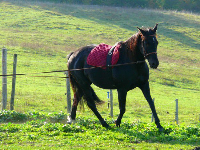 | Dire merci | de la longe, des longues rênes 1 fois par semaine et 1 a 2 balades dans la semaine ne dépassant pas 2h et demi. C'est le programme depuis la mi août (pouliche de 4 mois et demi à cette date) |