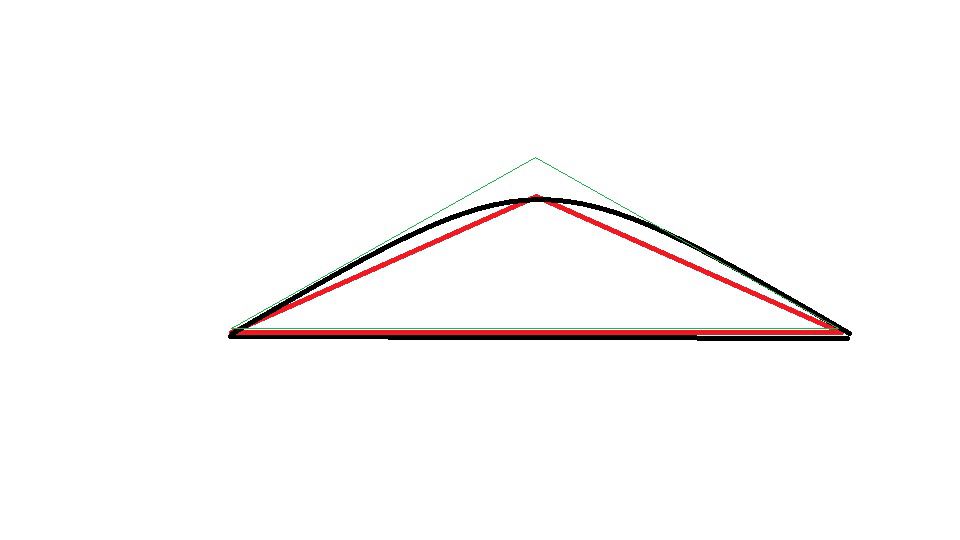 | Dire merci | 145 c'est monstrueusement plat. Au delà de 100, c'est deja bien large. En fait il te faut tracer 2 droites qui prolongent chaque cote de ton patron donc c'est plutot le vert. Mais il ne faut pas partir d'un point, il te faut faire des droites paralleles aux côtés. Si tu trouves 145, il y a peut etre un pb sur ton patron. Sinon tu prends un cintre en fer, tu le defais et tu fais comme sur la photo ci dessus. C'est pas forcement facile de ne pas bouger en l'enlevant par contre. |