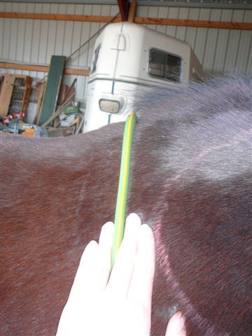 | Dire merci | Hello, Me voilà avec mon " patron " du dos de ma jument. Jusque là tout va bien .... Maintenant , ça se gatte Je souhaite calculer l'angle du garrot de ma jument et , je me rend compte que je ne sais absolumant pas d'où à où prendre les mesures. je prend du haut du garrot, enfin le point le plus haut , jusqu'au point le plus large? j'ai fait un petit croqui avec paint ( édite, j'essaye de remettre l'image ) je calcule l'angle vert ou rouge? (mon dieu que les cours sont loin ... le vert me paraitrait le plus logique ) merci Message édité le 27/10/12 à 00:34 |