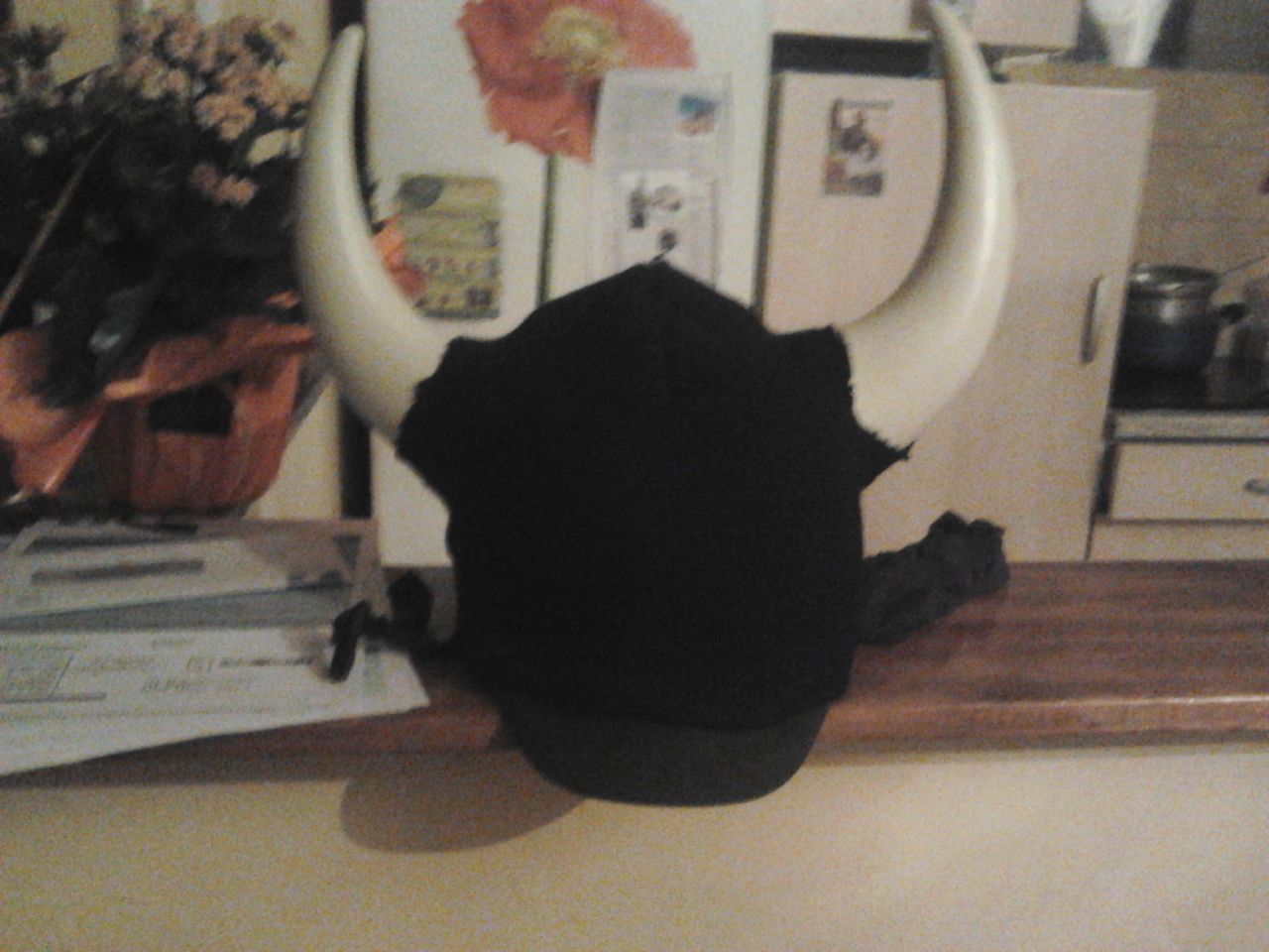| Dire merci | j ai retrouvé un vieux casque du puits du fou... j ai retiré les cornes et je les ai faites tenir dans un bonnet posé sur ma bombe!![]() ensuite un morceau de toile de jute ![]() avec un peu de ficelle et du maquillage, je ressemblerai à une vicking! photos le 4 novembre! |
