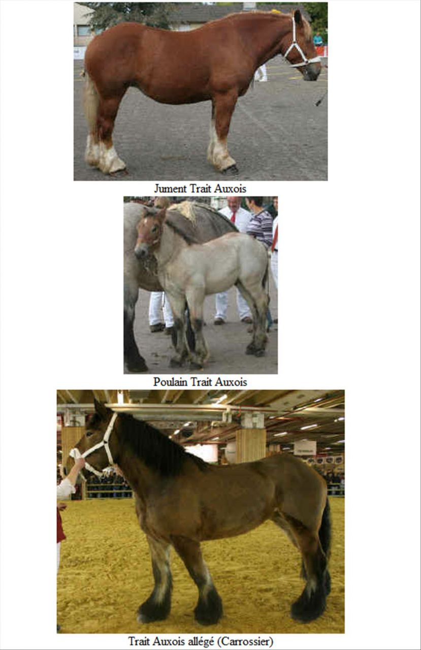 | Dire merci | Le trait auxois est réputé pour être un cheval moins courant que les percherons ect... Il serait apparement très proche du caractère de l'ardennais (après tout c'est une race issue de ce dernier); mais plus grand en taille, en moyenne, que l'ardennais (standard hein). En tout cas les traits auxois (et les autres en général) mériteraient d'être plus connus car ils peuvent devenir de très bon chevaux de loisir. |