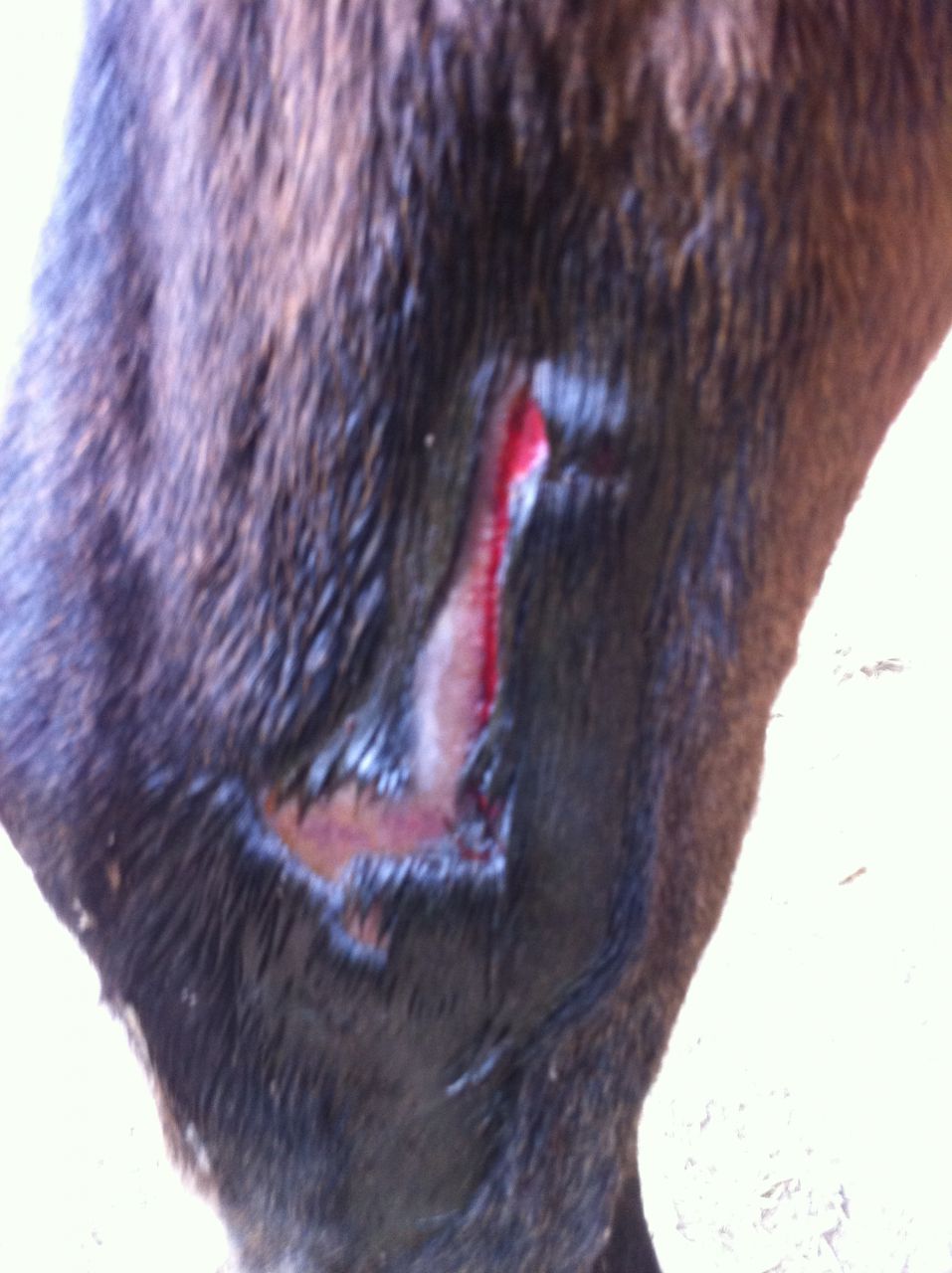 | Dire merci | Hello, J'ai retrouvé mon cheval hier avec cette plaie, c'est un peu chaud, il ne boite pas. La plaie se situe à l'intérieur du postérieur gauche. Aujourd'hui, la plaie est clean mais c'est un peu chaud et gonflé. J'ai nettoyé avec béta rouge + désinfecté avec la jaune. A votre avis, faut-il le mettre sous antibio ? Dois-je mettre du Dermaflon ? Et dernière question : vous pensez que ça peut être un coup de pied (antérieur ou postérieur) ? Merci ! Je n'arrive pas à mettre la photo ! Message édité le 02/11/12 à 12:04 Message édité le 02/11/12 à 12:04 |