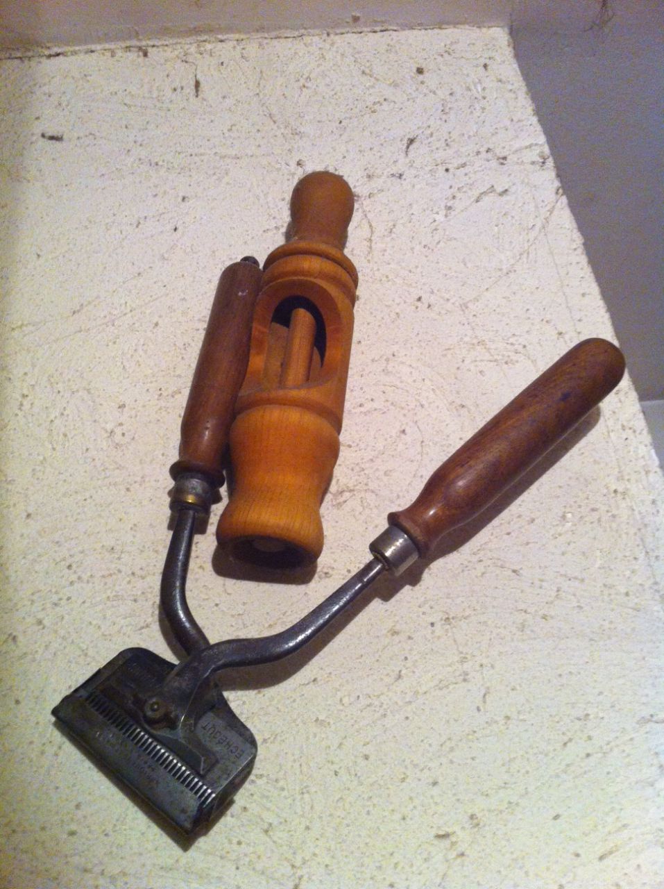 | Dire merci | J'en ai une a main qui devait servir pour les moutons,elle tond super bien quand on a pris le coup! Je l'ai en deco parce que je n'ai plus ma juju, qui y avait droit au printemps... |