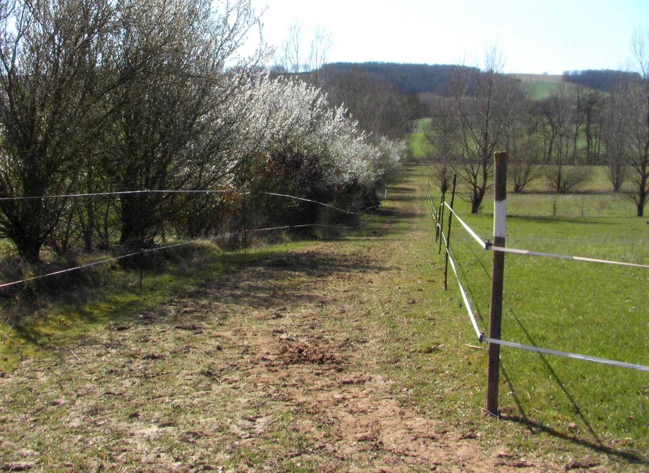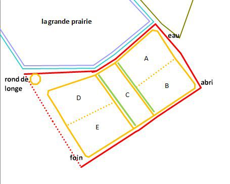 | Dire merci | Bonjour! Voilà je me pose pas mal de question car je viens de réaliser mon rêve en achetant une petite maison avec un graaaand terrain Au printemps prochain, j'aimerais bien y mettre mon cheval ainsi qu'un pote pour lui (ça c'est encore à voir qui, mais probablement un retraité d'une amie). C'est tout nouveau pour moi, je n'ai jamais eu de chevaux à la maison! J'ai quand meme une petite expérience de gestion de prairie car quand mon cheval était poulain, il était au pré H24 et on gerait ce pré à 2 voir 3 proprios, niveau nettoyage de l'abris, eau, compléments, foins, gestion de prairies etc... Et ce pendant 1an et demi. On allait s'en occuper à tours de roles. Il y avait entre 2 et 4 chevaux. Mais bon, être 100% responsable c'est encore autre chose! Bref, je voulais avoir votre avis concernant la gestion de la prairie tout au long de l'année à partir des photos et description de mon terrain pour pas faire de bêtises! Voir comment vous feriez les choses, aussi niveau emplacement des futurs boxes (j'aimerais en construire 2) et éventuellement une petite piste! Alors nue partie des prairies sont enclavées dans les miennes, donc je n'en suis pas officilement propriétaire, mais le terrain a été hérité par 8 enfants, et je peux l'utiliser pour mettre des chevaux(ça entretiens!) mais je ne peux donc pas faire de cloture fixes (a terme j'aimerais voir pour racheter le terrain évidement, mais on verra quand les finances suivront ^^). J'ai calculé en mesurant sur l'écran de mon ordinateur +/- la taille des terrains. La partie en haut fait presque 70ares (dont un peu plus de la moitier au milieu ne m'appartient pas, la partie le long du chemin de servitude en noir est à moi). La partie cloturée en jaune fait 37 ares et le verger en bas à droite, fait 12 ares. Bref, j'ai en tout plus d'un hectare à ma disposition! Les mesures sur l'écran sont a mon avis un peu surévaluées. Mais bon ya de quoi faire quand meme! Alors voilà le terrainn, entouré en rouge ![]() En vrai ca donne ca: la partie au dessus au mois d'aout: A droite le chemin de servitude, et tout à gauche on voit un petit peu la cloture déjà installée pour chevaux. Ca va en longueur jusqu'aux arbres au fond. ![]() Et la partie cloturée (en jaune sur la carte), vue du fond, en regardant vers la maison Là clairement ya plus grand chose, il y avait 3 poneys à l'année jusqu'en septembre sur cette zone cloturée ![]() |