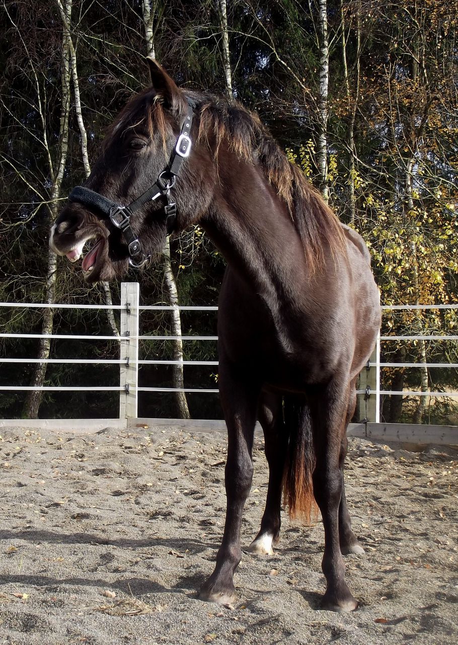 | Dire merci | Bonjour, bonsoir, Sa y est, la pluie, la neige et le froid ont fait rentrer les chevaux aux box ! J'ai ma pouliche depuis un peu moins d'un mois, et elle était au prés avec foin a volonté. Cependant, maintenant qu'elle est box je sais pas vraiment si je dois la nourrir avec des granulés ou pas. Elle est dans un box spacieux sur paille, avec une grosse ration de foin (elle est pas très gourmande aussi) et une pierre de sel. J'ai demandé à l'élévage avec quoi ils nourrissaient leur chevaux en hivers, et j'arrive pas a trouvé l'alimentation sur internet. Donc j'aimerai avoir votre avis, si vous savez ce que je peux lui donner? Présentation de ma louloute : welsh cob de 2 ans, qui, d'après moi, se porte très bien, pas trop grosse, ni trop maigre. ![]() ![]() |