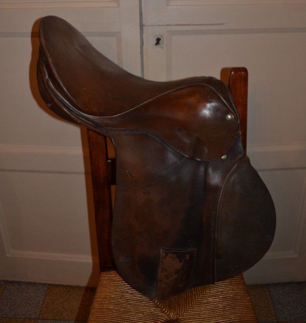 | meme pour une forestier, si c'en est une, elle est dans un sale état, les coutures des matelassures avant sont mortes, certaines parties sont manquantes (les passants du pendant d'étrivière) j'ose pas imaginer l'état des contresanglons... , mais pour de la déco, pourquoi pas. |