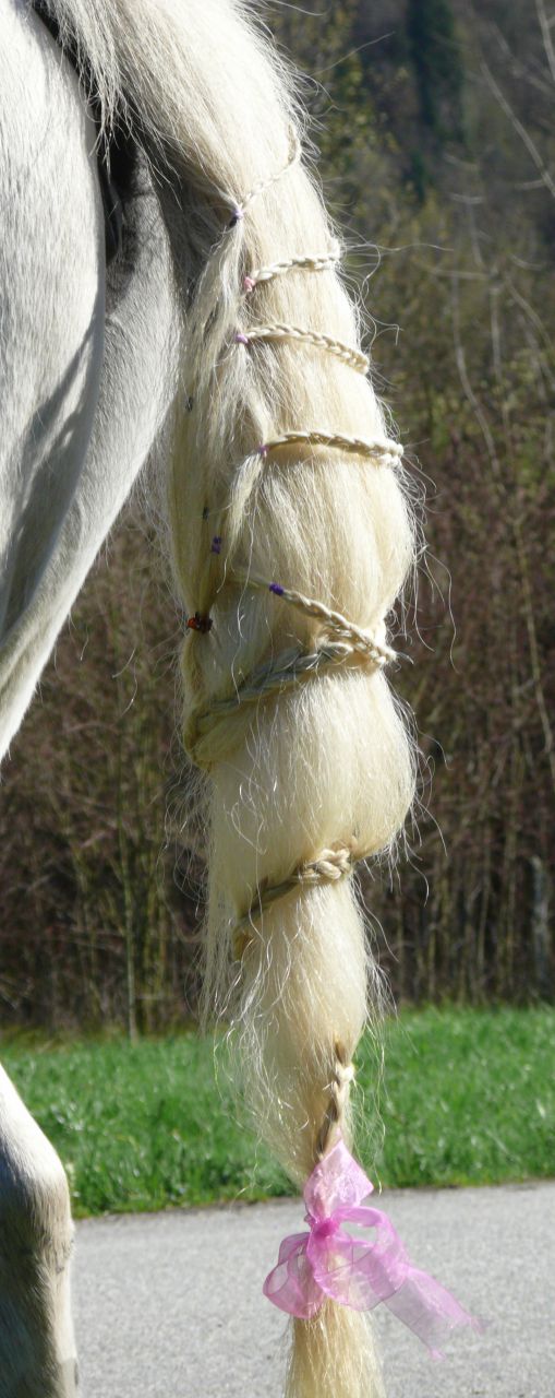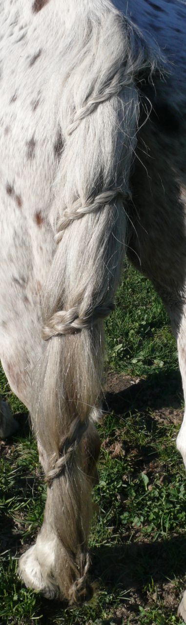 | Dire merci | la queue, je suis pas sure que le bougre se laisse faire, je vais voler le frison d'une copine, la j'aurai du crins au moins!et je vais essayer de faire quelque chose a mon affreux! |