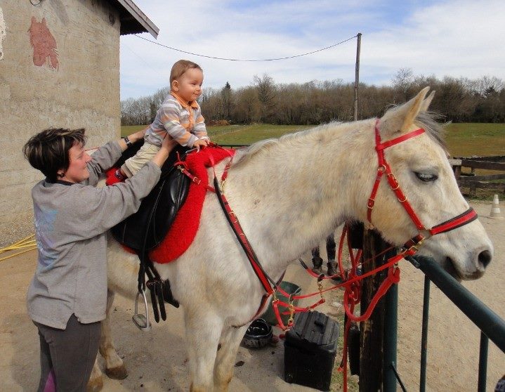 | Dire merci | alors encore plus dur vu qu'il est hors de question de lacher la petite sur le dos d'Ocre et comme je suis seule avec elle, je tiens la longe.... j'essayerais au moins de l'avoir lors du pansage, là je peux m'éloigner un chouilla pour shooter.. mais si elle monte je reste à proximité avec une main sur la longe et l'autre sur le bas du dos de la petite. |