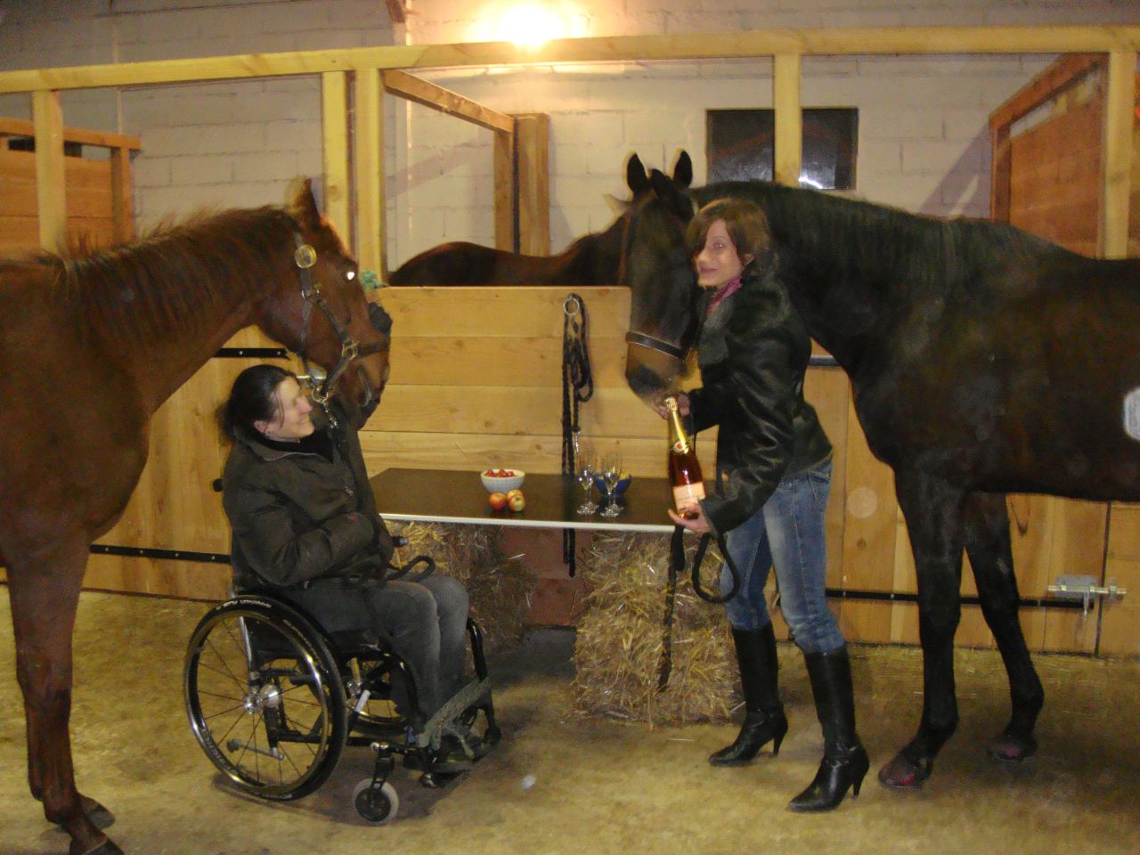 | Dire merci | C'était un super défi. Et je confirme qu'aucun cheval n'a été maltraité ni alcoolisé pour réaliser ce défi!! Ils sont déjà accros aux carottes, une seule addiction à la fois ça suffit!! |