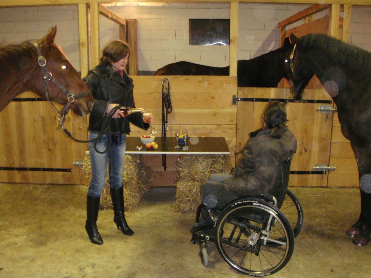 | Dire merci | T'inquiète pour le temps,on s'adapte,hipps!...![]() Oui Jehanne155 a des écuries superbes,qui communiquent avec le salon de la maison par une porte vitrée,donc on voit les chevaux quand on est à table et ça ça claque. |