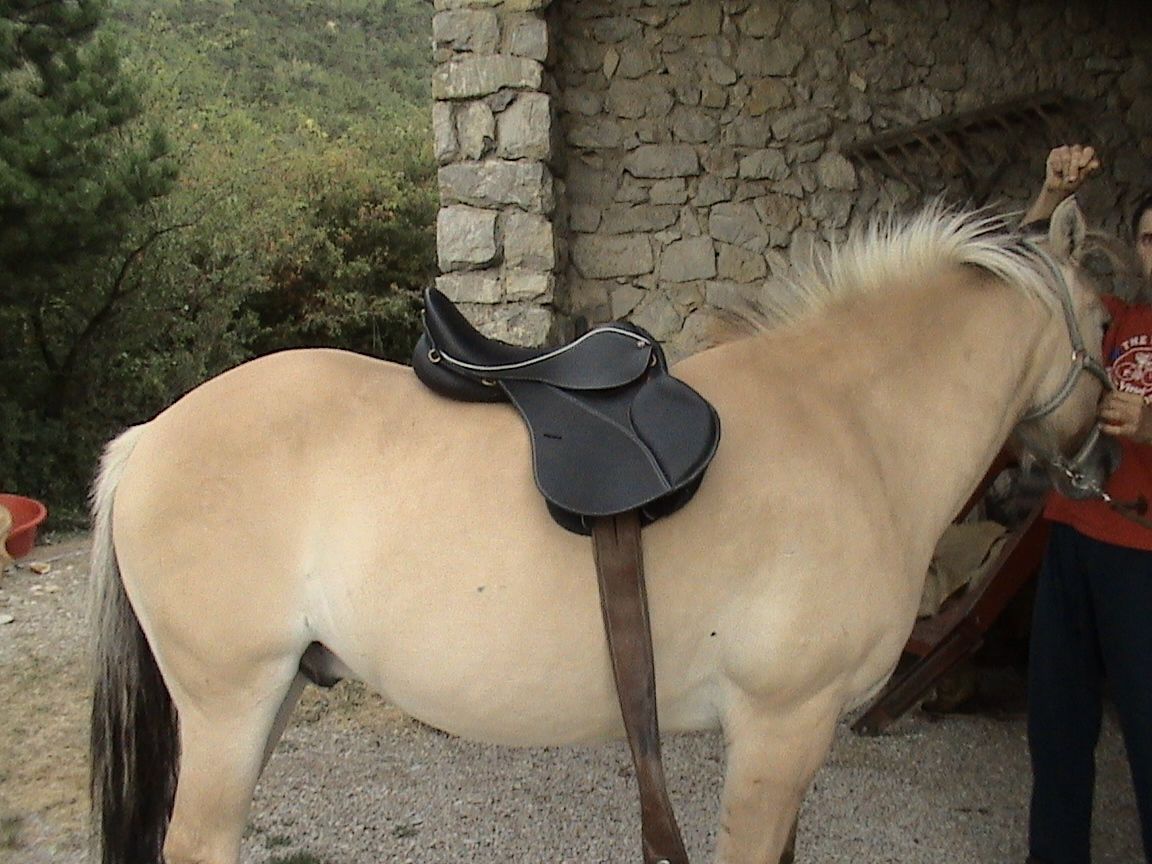 | Dire merci | Bonjour, Tous est dit dans le titre, mais pour préciser... C'est pour un grand fjiord plustôt model sport avec un dos pas trop court, pour faire un peux de tout et nous mettre peut-être au TREC. Le tout pour du loisir. Je lui ai pris chez un sellier une selle anglaise mixte avec arcade réglable que le sellier est venue réglé à la maison, mais elle tourne un peux au montoir, je vais encor faire un essais pour vérifier ( je ne peux pas me permettre qu'elle bouge ne seraisse qu'un peut car mon loulou s'est coincé le garrot à peine arrivé chez moi et il est sensible maintenant si la selle bouge ou avance un peut ) J'ai essayer une selle espagnole ( potrera ) celà lui vat bien mais les bates me gênes beaucoup ( les trucs qui remontent à l'avant et l'arrière de la selle ) et hors de question de sauter avec... Et je n'en trouve pas de série sans bates Les selles portuguaises ont l'air pas mal mais :La question : Une selle portuguaise avec l'assise anglaise est-elle polyvalente ou non c'est plus pour du dressage ? Merci d'avance ! Voici le loulou en question avec la selle ( 17,5" ) qui me semble trop longue ( et arcade pas encor réglée ): ![]() ![]() Message édité le 30/12/12 à 11:37 |