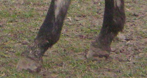 DéconnectéDire merci | Oui, ça ressemble a des pieds bots, mais on ne peut pas en être sur. Mais des postérieurs qui poussent comme ça, c'est vraiment pas bon : la paroi pousse de toute façon très droit... Faut faire venir le maréchal d'urgence, dans tous les cas. |