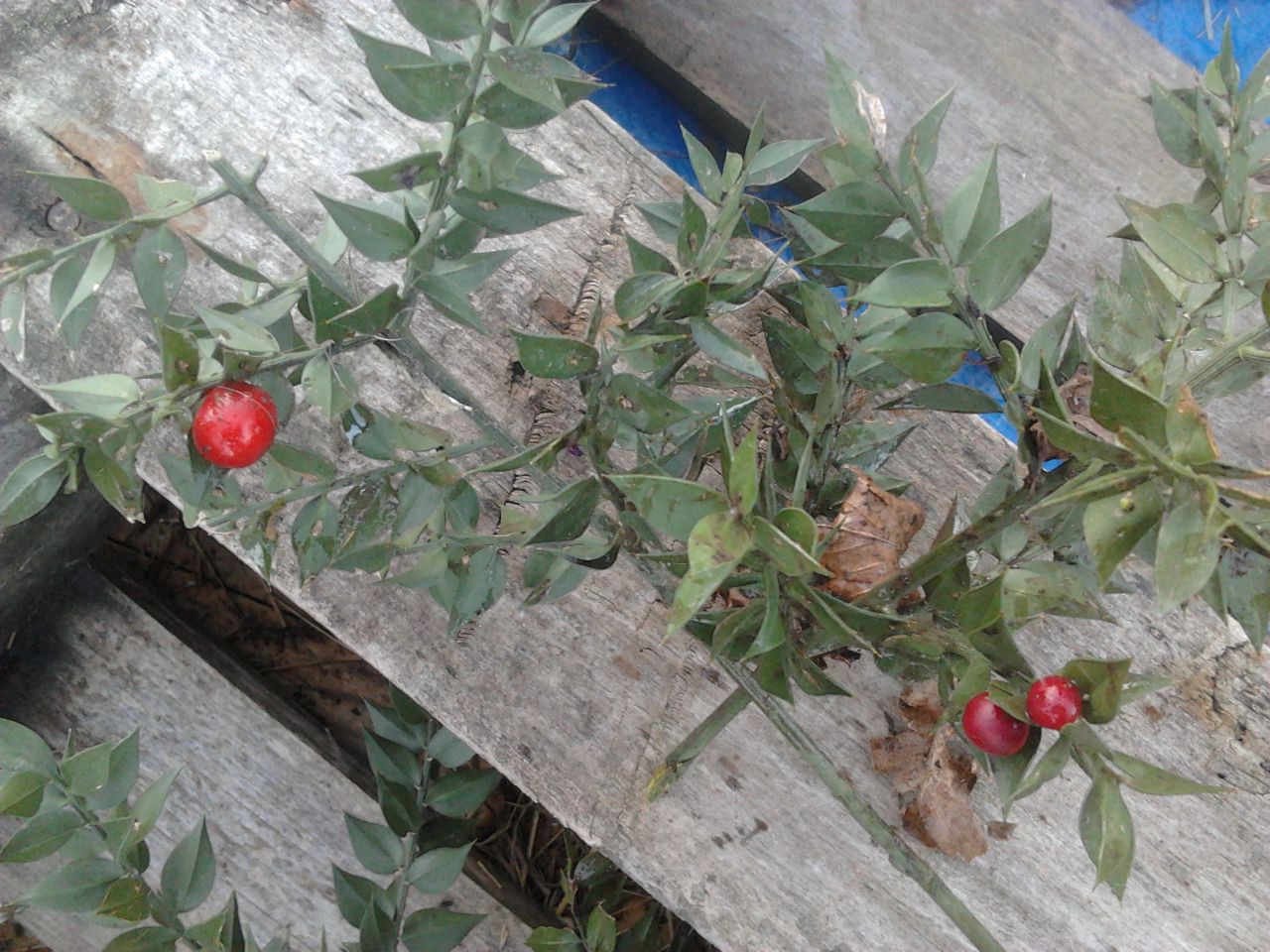 | Dire merci | On dirait du Fragon ( "faux houx" ), Ruscus aculeatus. Non toxique à ma connaissance pour les chevaux, on en a dans les haies de nos prés? Après peut-être qu'en grand quantité il y a un effet non désirable ? ![]() |