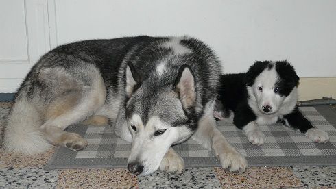 | Dire merci | j'ai un husky, Fudji, il suit très bien en balade, peu importe le temps ou l'allure il suit et adore! par contre au début il courrait partout sans faire attention aux chevaux, mais depuis qu'il s'est pris quelques coups de pied de prévention il comprend très bien qu'il ne faut pas rester trop prêt derrière! il adore leur faire une léchouille entre les naseaux au boxe mais il adore aussi bouffer les floconnés... ![]() j'ai également un jeune border de 5mois,Hido, gentil et obéissant (un border quoi!) mais pour l'instant il apprend doucement à connaitre les chevaux, je l'emmène aux boxes pour nourrir ou donner le foin. pour l'instant pas de balade car trop jeune mais d'ici le printemps je déferrais les postérieurs des chevaux et on tentera une balade en main pour voir comment ça se passe et qu'il apprenne la vie s'il fait l'idiot! enfin pour l'instant il est mode "je tente de rassembler les voitures qui passent dans la rue..." donc ça me rassure pas vraiment pour la suite avec les chevaux... |