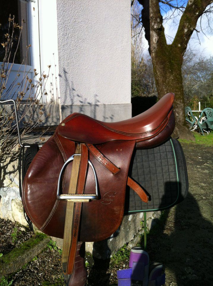| Dire merci | Bonjour à tous, Voilà, j'aurais besoin de vos avis d'experts avant de proposer un "troc" à mon gérant de pension. Ma selle est trop étroite pour mon grand cheval et la seule lui correspondant est une Forestier (Dont je ne connais pas le modèle) qui a déjà un peu d'âge (Gros accrocs sur le troussequin). C'est une selle dont il se servait pour le club, et dont il ne fait plus grand chose actuellement (Le cheval en question est partit), pensez-vous que ces deux selles ont une valeur plus ou moins similaire? (Je ne voudrais pas lui proposer quelque chose d'absurde) Ma selle : ![]() Celle que je voudrais récupérer: ![]() |