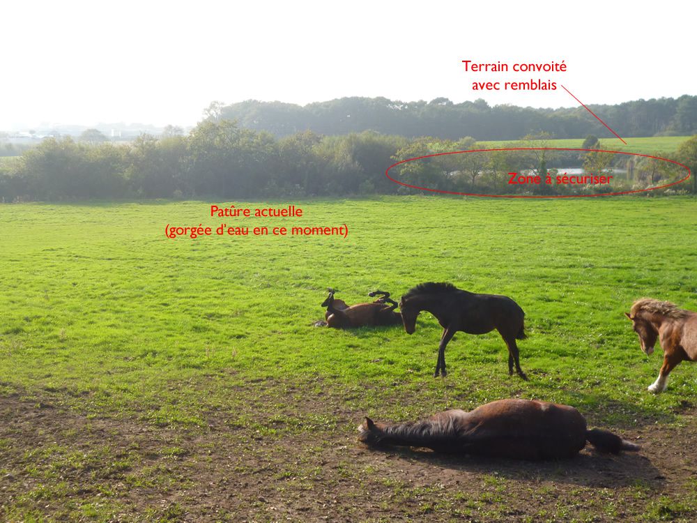 | Dire merci | Attenant à la pâture actuelle de ma jument, il y a un pré surélevé qu'avec le proprio de la pension, nous envisageons de louer à la commune. Cela permettrait de doubler la surface (déjà très belle de 6 hectares mais actuellement totalement inondée car en contrebas). La pâture visée a été surélevée par un remblais d'une bonne dizaine de mètres de haut. La question que je me pose, c'est, est-ce dangereux? La zone a été biensur totalement décontaminée avant d'être remblayée, mais y a t'il un risque pour les chevaux à aller sur ce genre de terrain? L'avantage, c'est que c'est non constructible et que ça le restera, c'est en hauteur donc ça ne sera jamais inondé, et des années comme celle que nous traversons, c'est vraiment non négligeable. Il y a pas mal de travaux à envisager pour sécuriser le terrain car il y a en contrebas un point d'eau avec un petit "ravin" de quelques mètres... mais la question essentielle est sur le danger éventuel de pollution du terrain? |