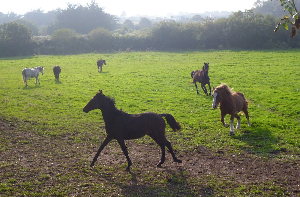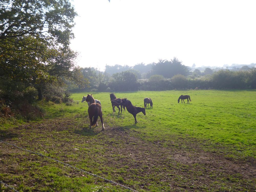 | Dire merci | Pour sécuriser je ne vois pas d'autre solution que de clôturer l'espace où tu ne souhaites pas qu'il se rendent... Si tu souhaite que les 2 patures communiquent alors moi je baliserai clairement voir je débrousaillerai pour créer un couloir pour le passage et je cloturetai le reste. En tout cas le paysage est sublime et ils ont l'aire heureux ces chevaux. |