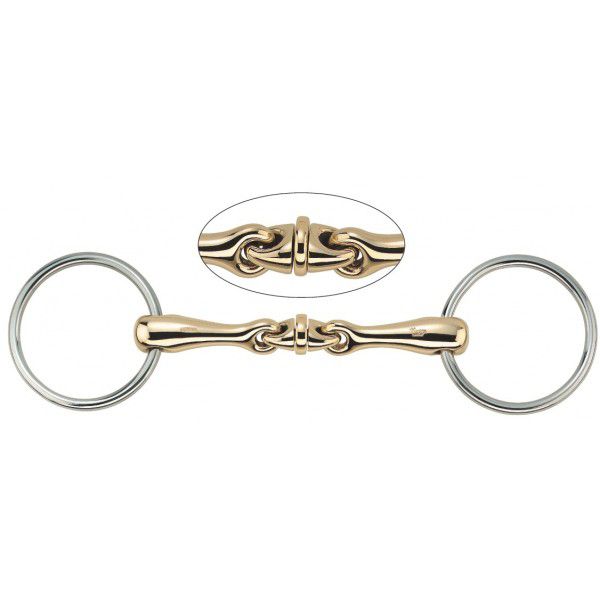 | Dire merci | Bonjour, Les mors doubles brisures sont plus doux que les mors simple brisure. le mors simple brisure peut blesser le palais du cheval en cas de mauvaise action des mains. la forme de l'alliance entre les deux branches n'a pas beaucoup d'importance...sauf éventuellement le prix. cordialement |