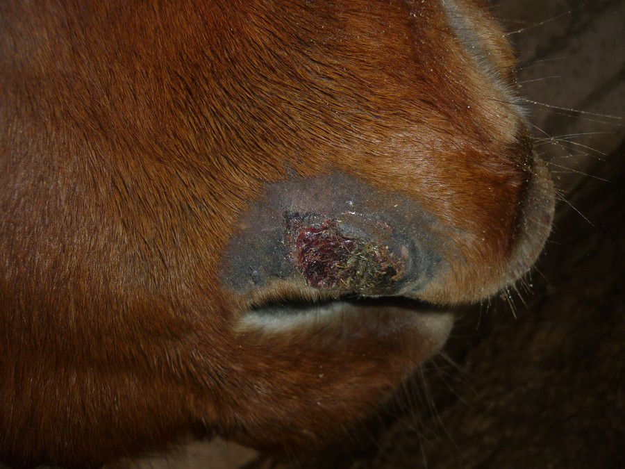 | Dire merci | Mon Ukal s'était bien entaillé un antérieur en le mettant dans le rateleir !!! la peau pendait la proprio du ranch l avait couper ( moi j'y arrive pas ) puis après j ai soigne en désinfectant tout les jours + argile car en été et les mouches se faisait une joie d y allé et en quelques jours ça s'est bien refait .mais la au niveau de la lèvre supérieur c'est plus hard ... je suspecte un des chiens ...car sinon je ne sais pas comment elle se serait arraché ça ... |