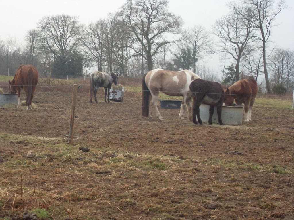 | Dire merci | Non pas de fond car paddock stabilisé. Mais comme là les cailloux ne se voient plus trop on va poser des dalles caoutchouc pour le prochain hiver et le râtelier sera dessus ainsi les chevaux auront les pieds au sec. Message édité le 07/02/13 à 22:16 |