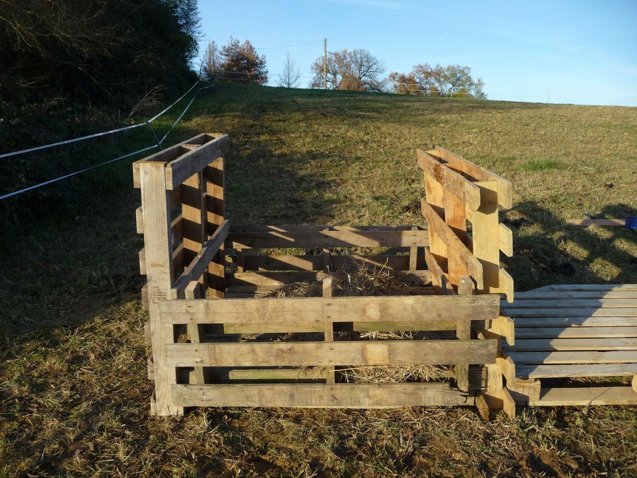 | Dire merci | Ok pour les vis. En fait j'aimerai mettre la quantité dont ils auront besoin pdt 5 jours car si je dois mettre la boule entière, il va me falloir au moins 4 palettes de plus !!!! En fait la réserve de foin sera juste à côté, il faudra que je trouve une astuce pour ne pas que ce soit trop galère à faire... Mais bon c'est comme tout, on apprend de ces erreurs donc je pense que j'améliorerai au fur et à mesure ![]() |