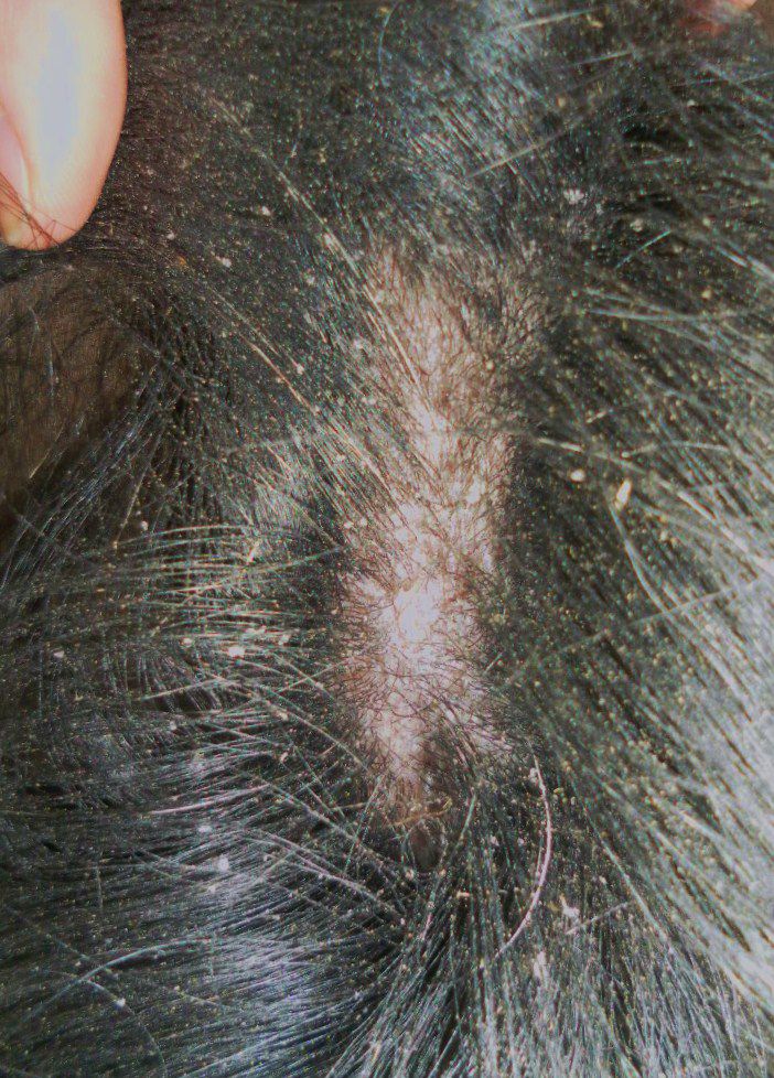 | Dire merci | j'ai pas l'impression que c'est de la gale ni la teigne on dirait jusrte une allergie locale acarien ..tu peux assayer le fronline ou butox pour on ou poux.. il a pu se gratter sans que tu sois présente par rapport aux poux ça gratte pas non stop j'en ai eu il y a deux ou trois mois car ma petite fille m'en a ramené et ça ne me gratter pas vraiment c'est pas les même poux que nous enfin tu verras ce que dis le véto |
