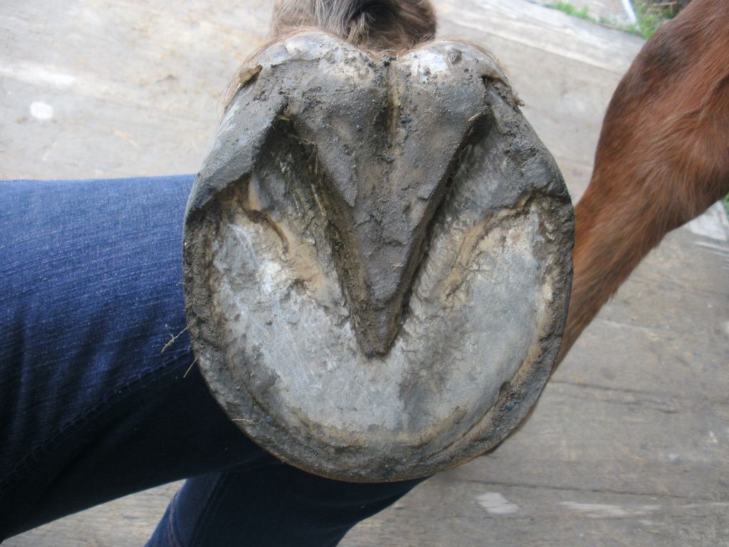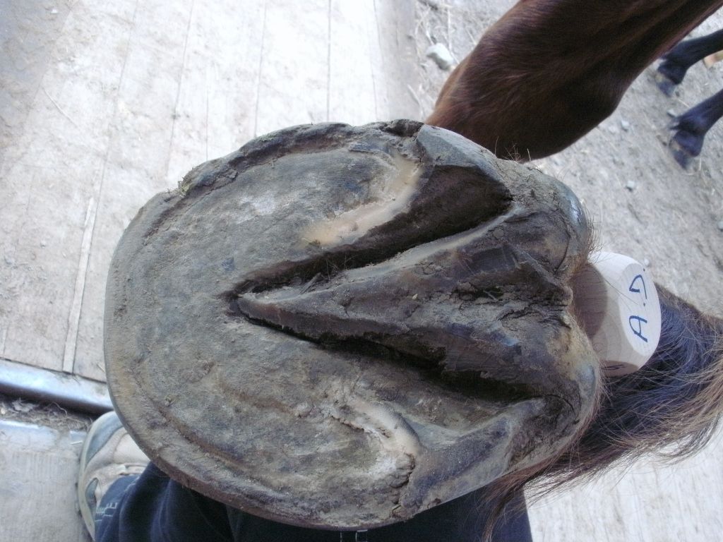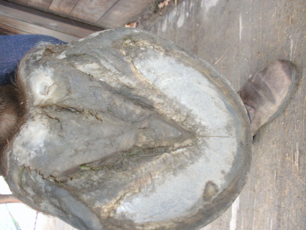 | Dire merci | Des nouvelles : tout va bien! C est impressionnant de voir l évolution du pied. Le talon se redresse, des barres sont apparue, le périople s est étendu et la pousse est beaucoup plus verticale et bien plus rapide. Je dois donner un coup de rape tous les dix jours alors qu auparavant le maréchal devait referrer dans les mêmes trous après six semaines. Et pour la première fois en neuf ans, il a fallu remettre les barres à niveaux. Niveau confort, l Âne est toujours nickel en piste et sur herbe ou sol lisse dur. Il est encore sensible sur les graviers et sur les cailloux mais il y a une nette amélioration. Sur conseil du pareur, je le promène pratiquement vous les jours sur du dur avec les sandales et une semelle pour stimuler davantage la sole. |