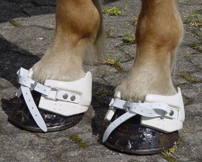 | Dire merci | Les chevaux ont des crampons, mais vraiment rien d'exceptionnel en soit :![]() Cela n'abime pas tellement la glace. Un patineur peut très bien passer après un groupe de chevaux. En compétition ou en show, quand vraiment beaucoup de chevaux passent, alors la glace est abimée comme après un match de hockey. Concernant les bandes blanches que tu aperçois, il s'agit de cloches spécifiques (ballenboots) que l'on utilise sur certains chevaux afin d'améliorer l'amplitude des mouvements. Le poids est sur l'arrière du pied : ![]() ![]() |