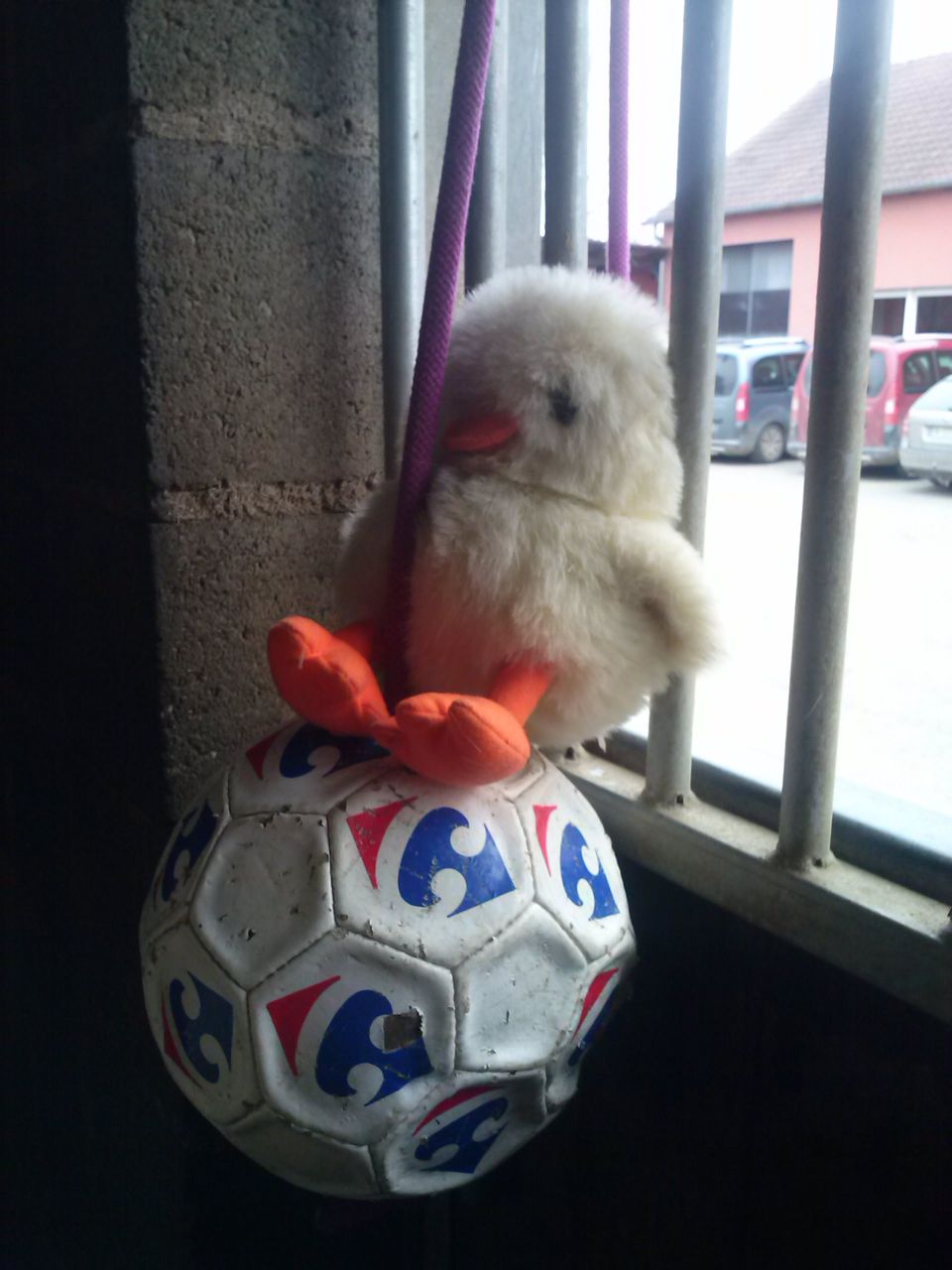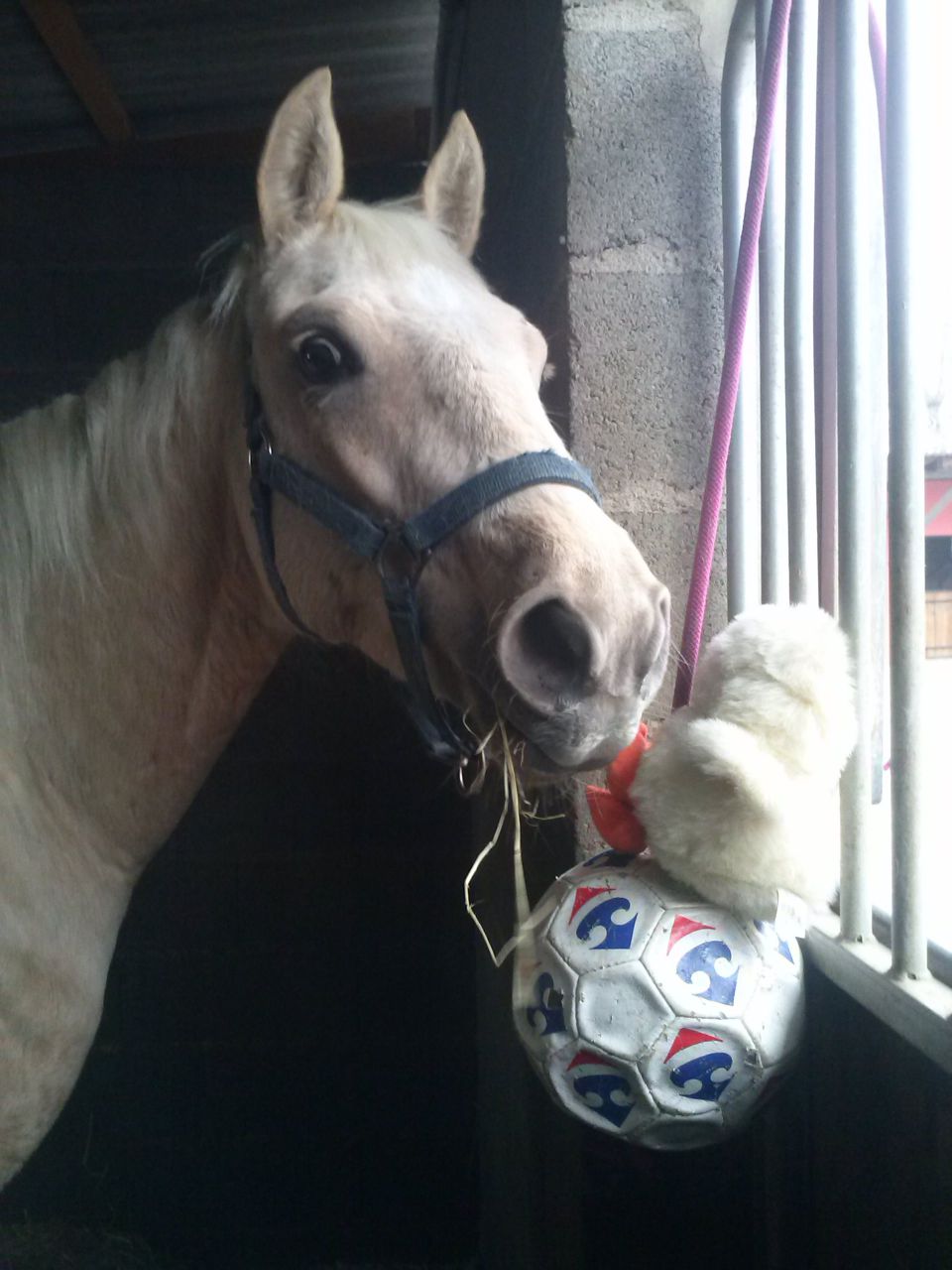 | Dire merci | chanel88: Mp tavenas Des niouz du ptiot: donc le post op suit son cours... il a un oedeme qui est apparu de part et d'autre de la plaie.( c'est normal) La plaie est belle et propre. Hier nous avons joué dans le box à nouveau pour distraire monsieur un peu, il est appelé petit prince maintenant la bas je lui ai acheté un gros ballon jaune tete de poussin, il en est dingue! il manque de contact avec d'autres chevaux c'est plus que flagrant! vivement la semaine prochaine et le retour à la maison! |