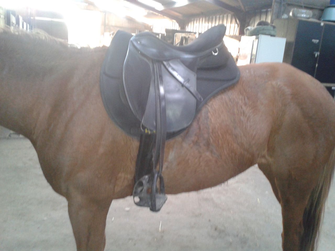 | Dire merci | Bonjour à tous. J'aimerais avoir votre aide de nouveau. Voilà situation.. Après de nombreux post ici sur les selles, après le passage de 2 selliers, dont un venu 2 fois et qui a vraiment tout fait pour m' aider (comme renvoi de mon actuelle Thorowgood en angleterre pour restauration complète des matelassures), après quasi 1 an et demi voire 2 ans d' acharnement (changements d' arcade, de matelassures, de sangles (passage à sans élastiques), essayage de toutes les positions de sanglage possibles, tapis divers...) je vais enfin lâcher prise. Je ne parviens pas à adapter ma thorowgood à ma jument (problème d'avancement). Sauf que, j'ai testé une multitude de selles que j' aurais aimé modulables, surtout par l'arcade car malgré ce que l' on peut dire, il est difficile de garder le même état de corpulence, de graisse à la belle et à la moins belle saison. J'ai donc essayé wintec, sigma, zaldi, hervé godignon, thésée, thorowgood et j' en passe. MAIS, rien à faire, toutes ces selles avancent sur le garrot et les épaules. Et je commence vraiment à en avoir ras le bol. Ma jument n'a que 6 ans et est déjà marquée par la souffrance infligée par les selles (traces blanches sur le dos). Donc, je suis à la recherche d'une nouvelle selle < 500-600€, qui puisse s'adapter si possible, plus pour l' endurance mais je veux rester dans le classique avec une selle anglaise pour toucher à toutes disciplines. Bref, je pense que je suis vraiment maudite car malgré tout ce que j'ai dépensé et essayé pour ces foutues selles, rien à faire, aucune ne daigne correspondre ! ![]() Éclairez moi svp. Merci |