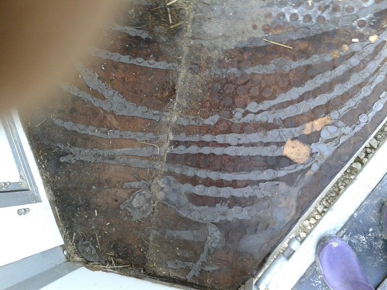 | Dire merci | Alors voici les différentes étapes ! Découverte de la belle fissure qui a permis de sauver les pieds de mes poneys (heureusement je fais une fixation sur les planchers sinon je ne sais pas ce qui aurait pu se passer....). ![]() Vue du dessus avant d'enlever les tapis : ![]() Tapis enlevés et là : horreur ça s'effrite un peu partout !!! ![]() Allez hop, on vire le vieux plancher !!! Un cauchemar, des vis partout !!!! ![]() |