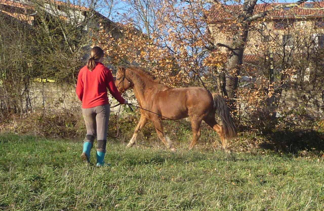 | Dire merci | Transitions rapprochées jusqu'au reculer/galop/pas, spirales, huit de chiffre, lignes droites, latéralisations diverses... Après tu as tout ce qui est travail de confiance, passage de bâche, de porte, changement de terrain (longer dans une nouvelle clairière). Et, déjà évoqué, les possibilités avec des barres au sol sont infinies. |