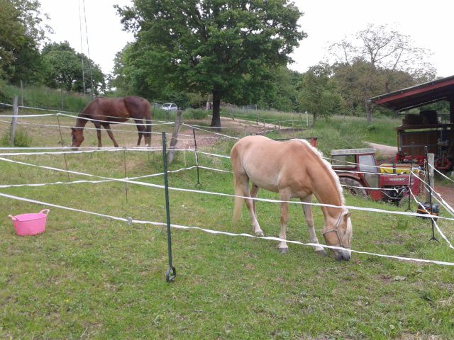 ) Je pense que ça ira pour le mini paddock, tant qu'il y a de l'herbe dedans, il a l'habitude de vivre seul en paddock et c'est quand même une race de cheval calme (même si le box transforme souvent un cheval, malheureusement...).