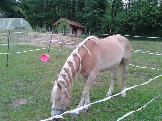 | Dire merci | Des petites nouvelles de Tyrol. Le maréchal est venu, il lui a mis des fers rolling aux antérieurs, apparament c'est plus léger et ça va l'aider. J'ai déferré les postérieurs. Il a trouvé qu'il marchait bien droit au pas. Dans 3 jours il a le droit au mini paddock 2h/jour. J'ai suivi vos conseils pour le respect et les morsures, je lui ai mis un coup de longe sur le nez à chaque fois et c'est passé. Il est redevenu gentil au box et en sortie. En sortie je reste sur mes gardes, des fois il secoue un peu la tête en mode content, alors je tiens bien ma longe. Dans 10 jours, c'est le contrôle véto. Je suis pressée de savoir comment va se passer la rééducation. Je me pose pleins de questions... |