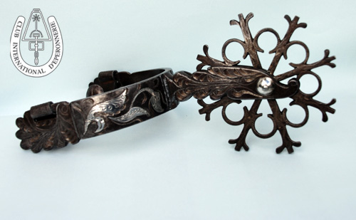 | Dire merci | Quoique si j'en crois Baucher : il y a bcp trop de dents là-dessus pour que ce soit vraiment efficace :![]() Il a dit écrit dans son "dictionnaire raisonné" qu'il fallait que les éperons aient "sept pointes" Parce que "les éperons à 5 broches pénètrent trop profondement et risquent de blésser le cheval " (sic !) et que "s'il y a trop de dents, la pointe ne pénètre pas jusqu'aux téguments" (re-sic !) c'est le même Baucher qui pronait la légèreté, la "main-sans-jambe-jambe-sans-main" qu'on a tous récité ... et qui COUPAIT ses sangles (en cuir !!) à coups d'éperons ... et devait s'enrouler les jambes dans des tissus mouillés en descendant de cheval .... |