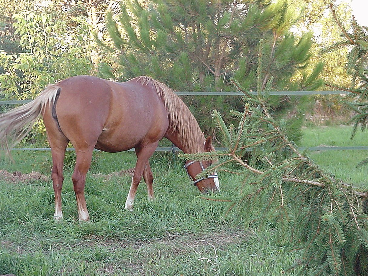 | Dire merci | Bonjour a tous les forumeurs ![]() Voila deja quelques années que je me bats pour garder ma juju haflinger en etat correct (c'est a dire pas obèse ) mais cette année c'est le pompon comme on dit j'y arrive plus...Pour planter le decor, elle est dans une petite pension familiale, pas beaucoup de chevaux, la seule à etre de race "rustique" les autres ce sont surtout de grands chevaux de selle ayant du mal a rester en etat. La gerante fait un système de rotation de prés pour ne jamais avoir de prés pélés mais là avec la pousse de l'herbe ils sont balancés dans des prés bien trop gras pour elle et elle explose.Je crains vraiment pour la fourbure là... Coté boulot elle est sortie plusieurs fois par semaine: balades, trotting, longe. Je ne peux pas la mettre en pres/box car pas de box a l'ecurie. La laisser dans un paddock tout pelé avec un peu de foin ok mais elle sera toute seule ![]() Reste la solution du panier, mais comme je la connais elle va peter un cable, essayer de l'enlever et se barrer quand je vais arriver pour lui mettre ![]() Voila voila je ne vois que ça ou alors changer de pension... Des avis? |