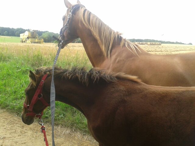 | Dire merci | Hé bien enfaite je ne connais pas du tout le papa car la mère a été sauvée du couteau alors qu'elle était pleine de la petite. Oui ses membres sont noirs en dessous mais sa queue est mélangée et ses crins un peu aussi. ![]() |