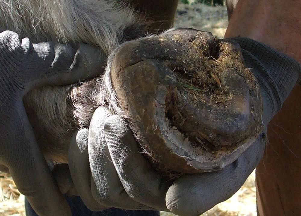 ) : ça ressemble fortement à ce que j'ai sur une ânesse de ma clientèle, à qui j'ai enlevé toute la paroi (laissant un ruban d'un petit centimètre sous la couronne) et cette ânesse est pourrie de fourmilières aux 4 pieds...